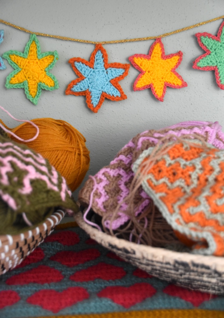 Am Himmel sind sie ganzjährig zu sehen – Sterne. Ich fabriziere sie in bunten Farben, obwohl ich eher zu erdigen Tönen neige – zur Zeit.