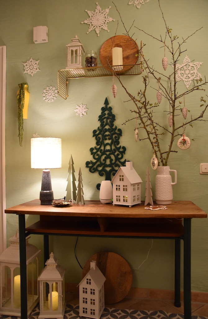 Ja klar – ist mir aber schnurzpiepe. Abends noch Weißdornzweige in der Prärie eingesammelt, meine gehäkelten Schneekristalle und was mir sonst noch in die Finger kam, aus den unterirdischen Gewölben nach oben befördert.